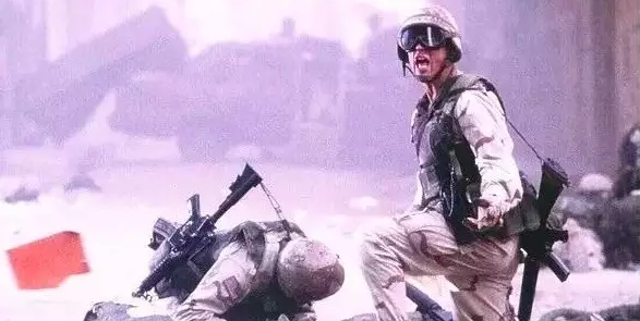 奔跑而來的人物和飛馳而去的汽車之間的連接,首先讓奔跑而來的人物越跑越近,直至充滿整個畫面,使畫面變成黑色,然后連接上后續的鏡頭。